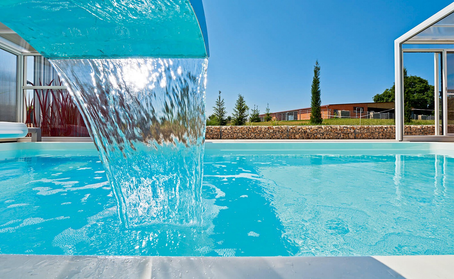 Es gibt Fertigbecken mit integrierter Pooltechnik und Becken bei denen die Schwimmbadtechnik in einem separaten Raum installiert werden muss.