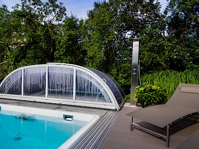 Fertigbecken werden aus hochwertigsten Materialkomponenten hergestellt. Durch die Fertigung direkt im Werk bleibt viel Raum für eine individuelle Gestaltung. Bequeme Einstiegstreppen in unterschiedlichen Formen und eine große Auswahl an Beckenmaßen und Modellen stehen zur Verfügung.